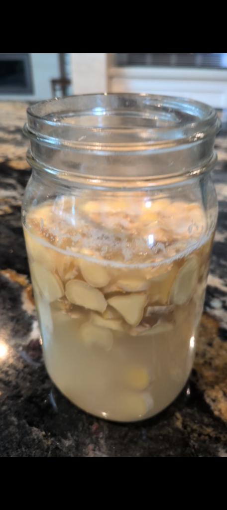 My ginger bug starter after 5 days in this wide-mouth glass jar.